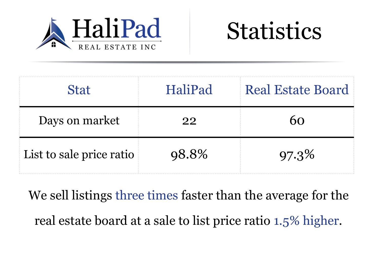 HaliPad Stats | We sell homes faster, for more money than our competition